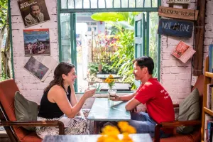 - Food tasting such as banh mi, BBQ pork rolled with rice paper and fresh herbs, Cao Lau noodle/Chicken rice, rice cakes (Banh Beo), local milk (soya milk), sweet black sesame soup (Xi ma), local desert (coconut biscuits...),